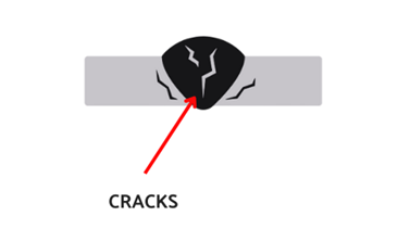 Cracks are linear separations along or near the weld, occurring in the base metal, weld metal, or both. They are often the result of stress, improper heat control, or lack of critical steps like preheating of the base metal. Cracks are generally classified as hot or cold:
